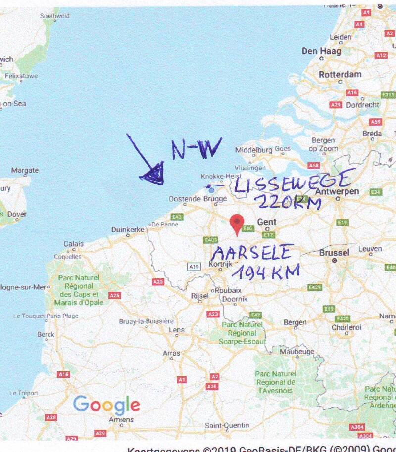 Dit lijstje schept dus duidelijkheid . Lissewege ligt 27 km verder dan Aarsele en ook nog eens meer dan 20 km naar het oosten . De duiven kwamen uit ....het oosten !