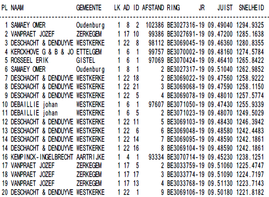 Er zijn er tegenwoordig nogal veel die spreken " zonder vel op hun buik " , zoals we hier zeggen , en dat is synoniem van een " kieken zonder kop " en daarom heb ik hier de 20 eerste van beide uitslagen bij gevoegd als bewijs !