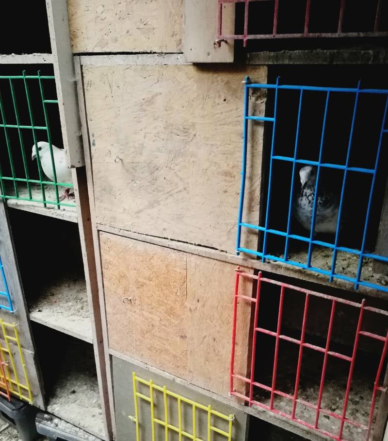 Ze huizen op het hok der jonge duiven . Dit hok van de jonge duiven bevind zich achter het grote hok .