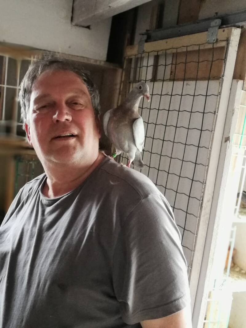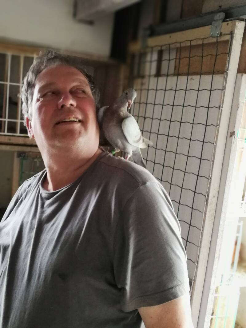 Met die duiven bezig zijn , hun gadeslaan en mij verplaatsen in hun wereld maakt mij gelukkig .
