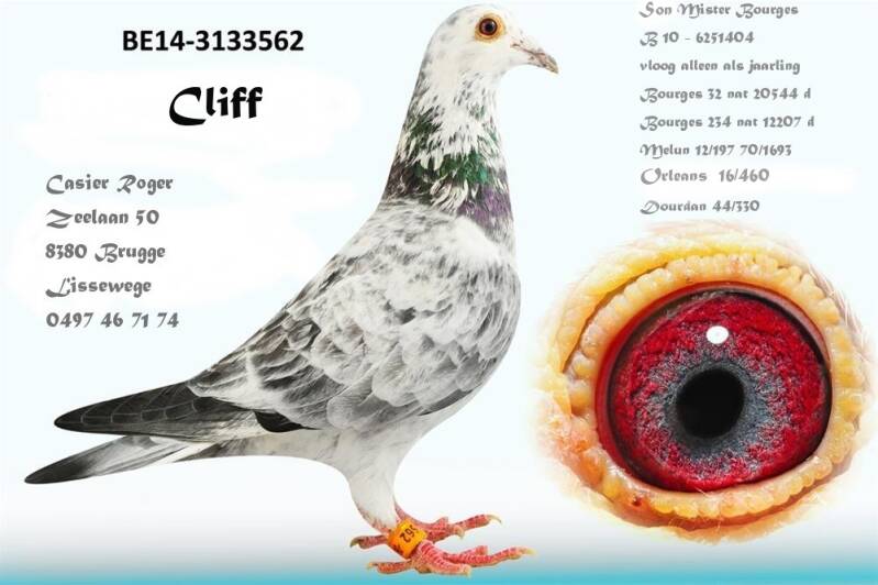 En tenslotte heb je de stamboom van CLIFF waarin MISTER BOURGES een duivin krijgt van een minder bekende liefhebber