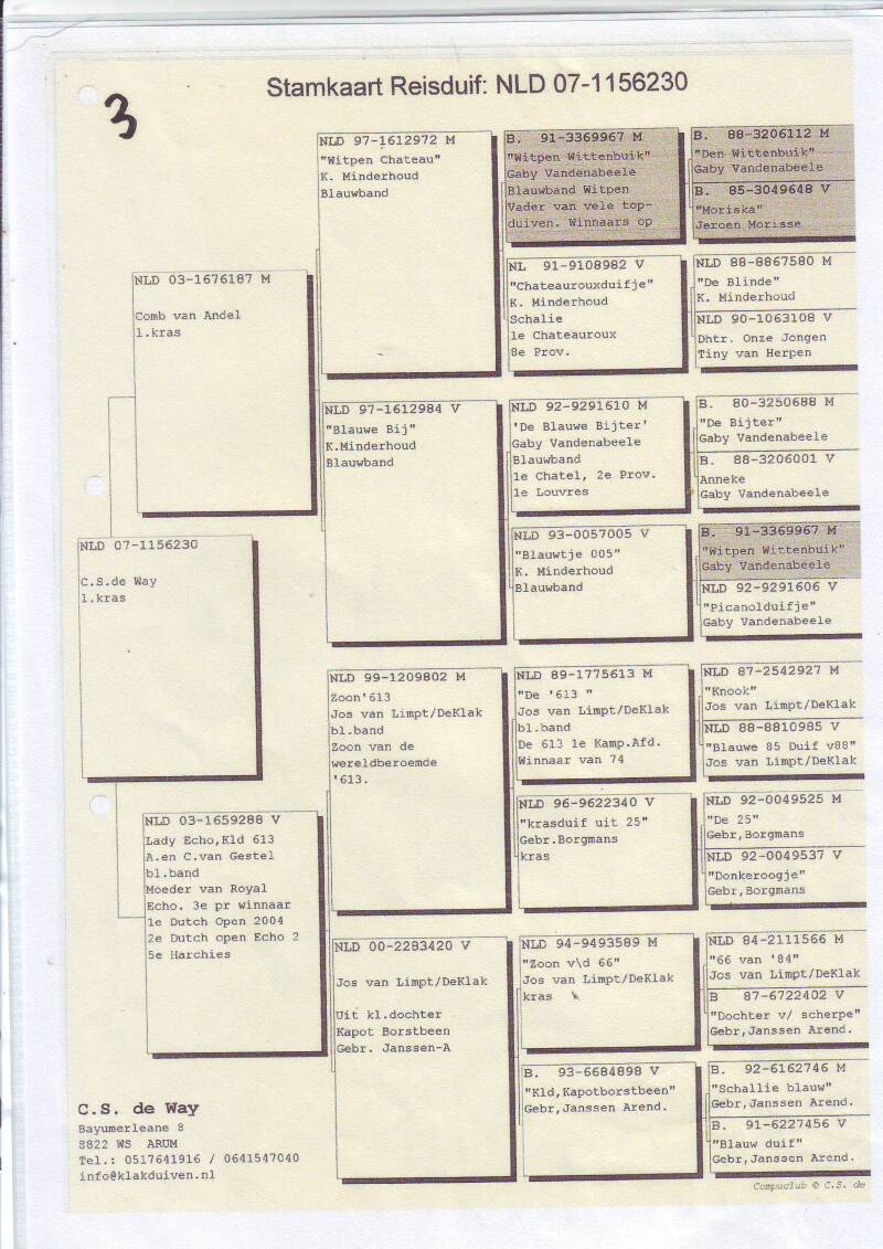 Om het verhaal compleet te maken geef ik jullie de stamboom van de moeder van de KLAKSTJES 35 & 36 .