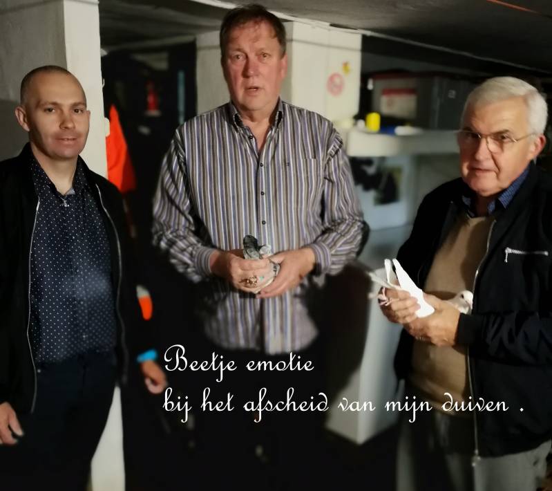 Wim was vergezeld van zijn vriend Jhonny Van Gucht , zijn stadsgenoot . Johnny heeft hem geholpen met zijn herstart in de duivensport , vandaar de vriendschap . Mooi is dat !!