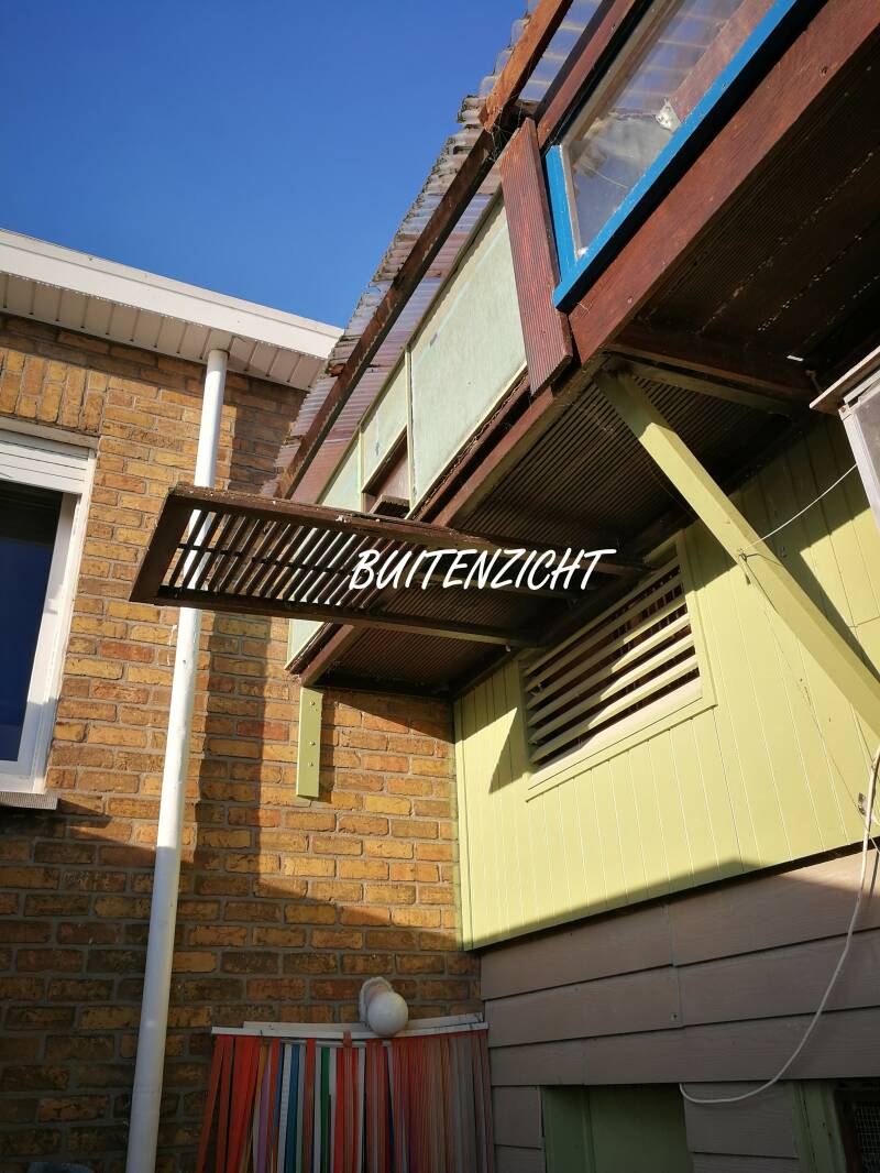 Een meter boven de vloer werd er een erker aangebouwd van zo'n twee vierkante meter , afgespannen met windbreekgaas .