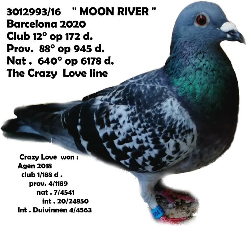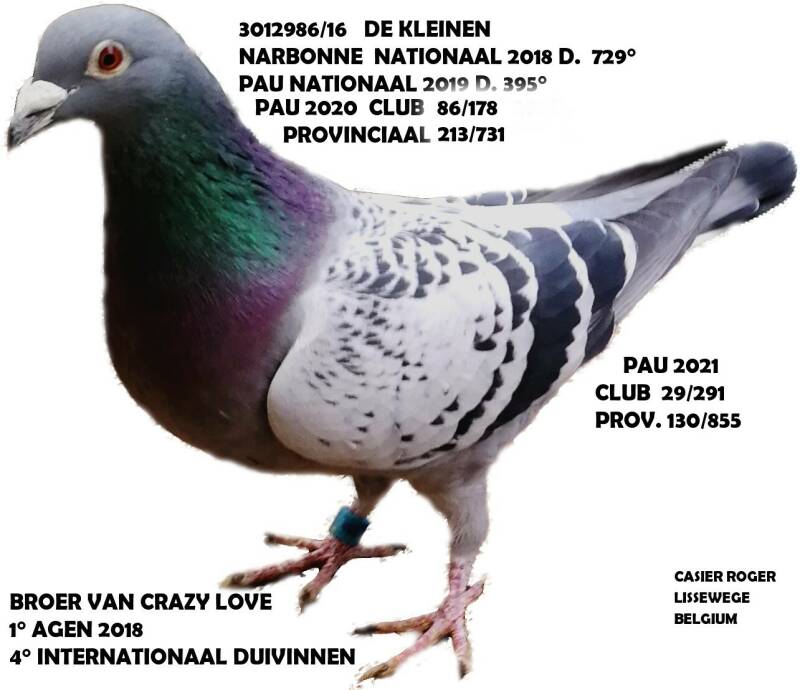 Een sympathiek duifje om kerken op te bouwen . Zijn eigen zus ( CRAZY LOVE ) won trouwens de eerste prijs in de club uit Agen en 4° internationaal duivinnen !!