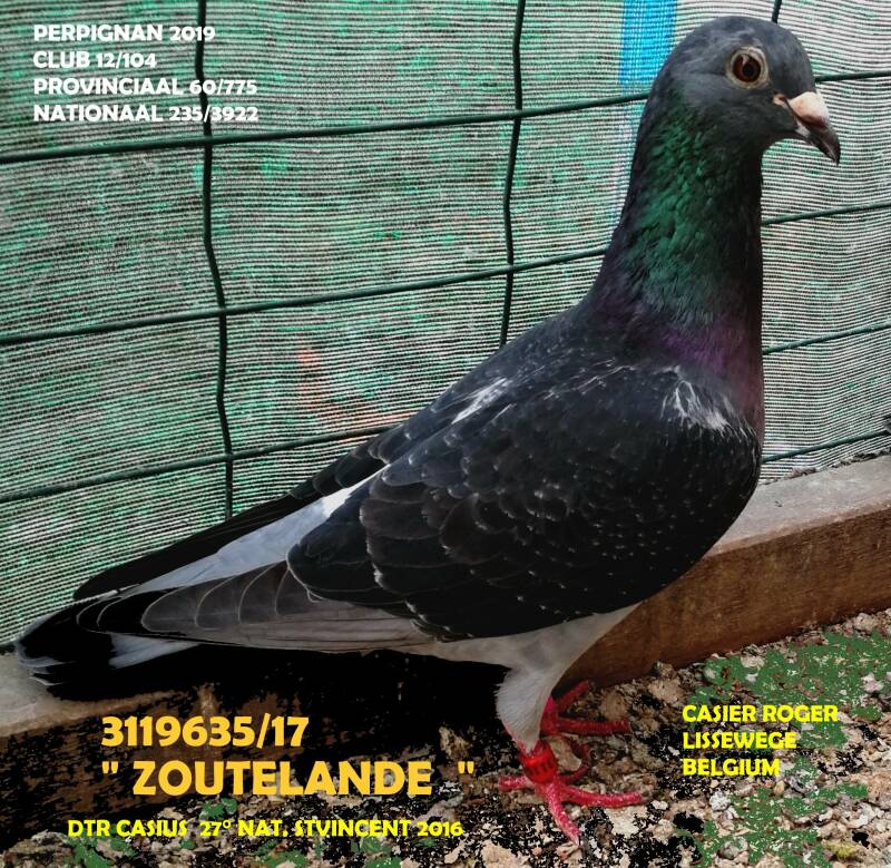 Een er van is ZOUTELANDE die verleden jaar zwaar gekwetst thuis kwam van St Vincent en nog de 58° won op 187 duiven . Ik vroeg mij toen af waar ze zou gestaan hebben zonder die kwetsuur !!!