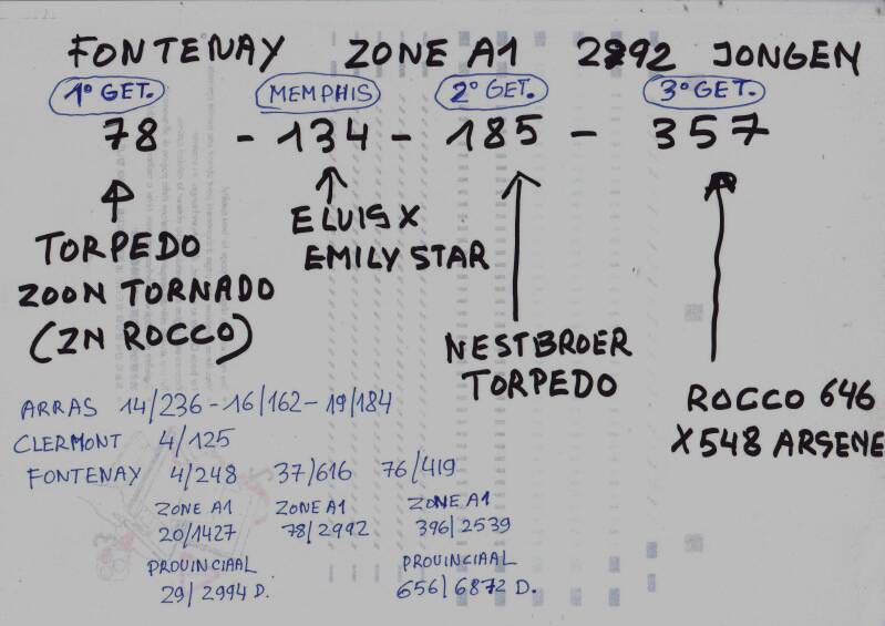 De regionale met 616 jongen van hierboven en die van de provinciale ZONE A1 met bijna 3000 duiven !!