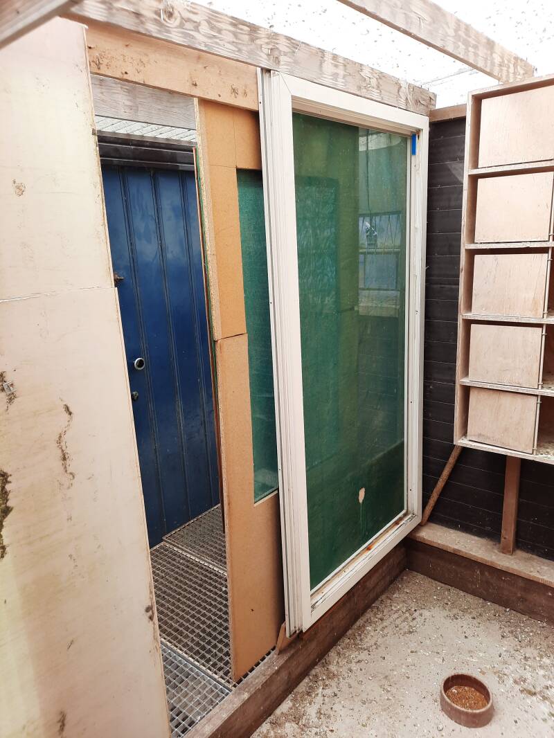 Zo goed als nieuw . Het glas er uit en windbreekgaas er in . Zo eenvoudig kan het leven zijn !