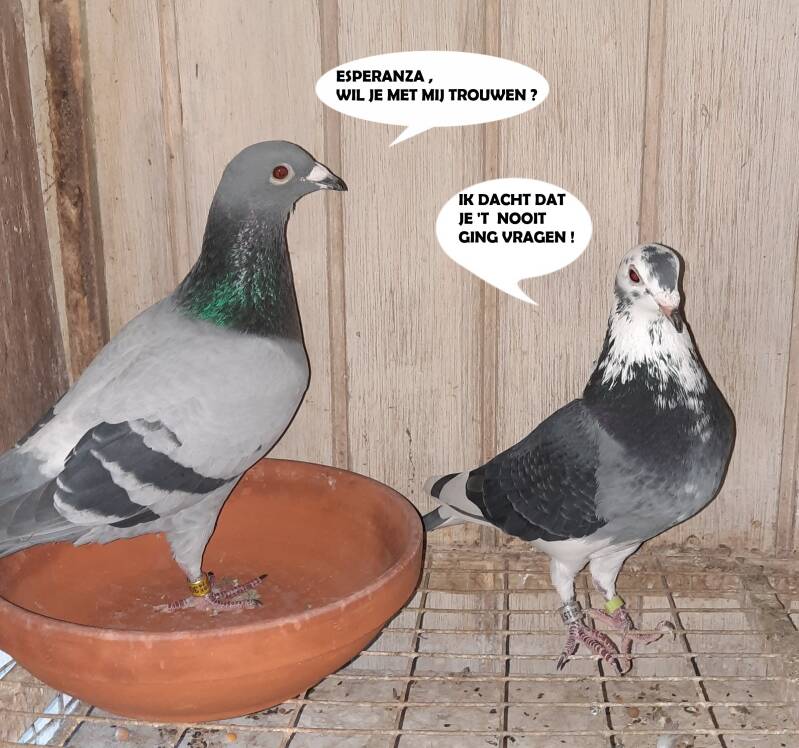 Was Wim wel een duiver ? Ik had hem nog nooit horen ronken , ( koeren ) en een krop zien maken .....