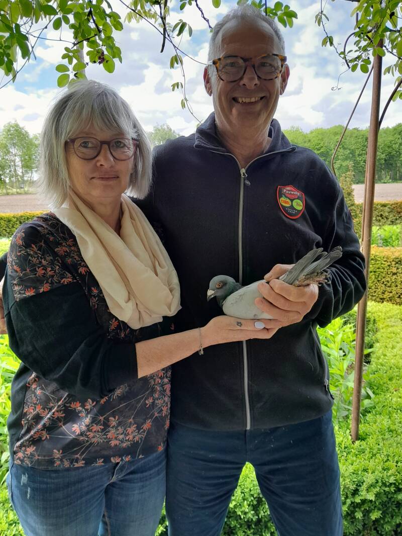 Onder hen de Blauwe Duiver 4167916/24 zoon van de 725 uit " Peter " en de 548 Arsène .