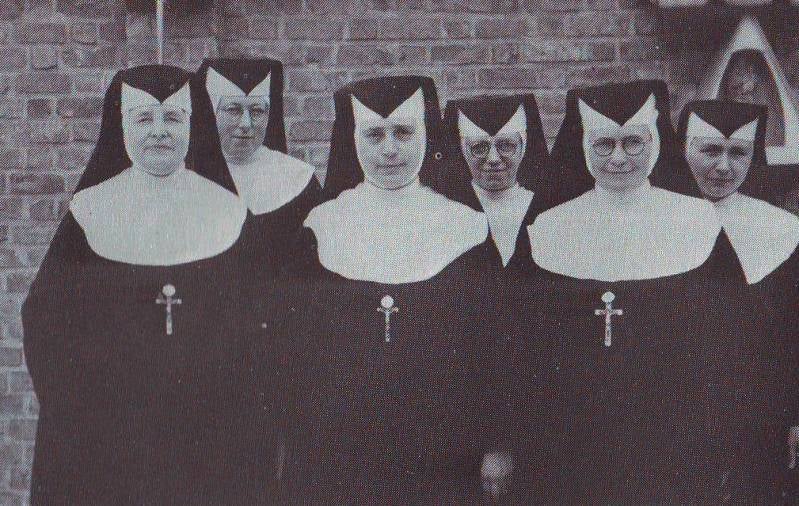 Dit zijn de zusters die instonden voor het onderwijs en de versiering van de kerk te Dudzele en het hoogaltaar met bloemen , kaarsen en draperieën .( foto anno 1953 t.g.v. het zilveren kloosterjubileum van de zusters Lucina en Veneranda )